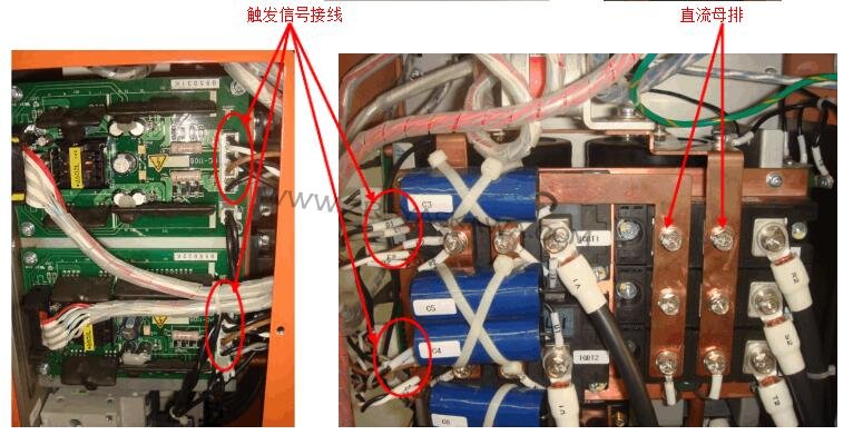 更換驅動板后,一定要檢測確認觸發信號接線可靠性,才可以使控制器上電,否則損壞IGBT。